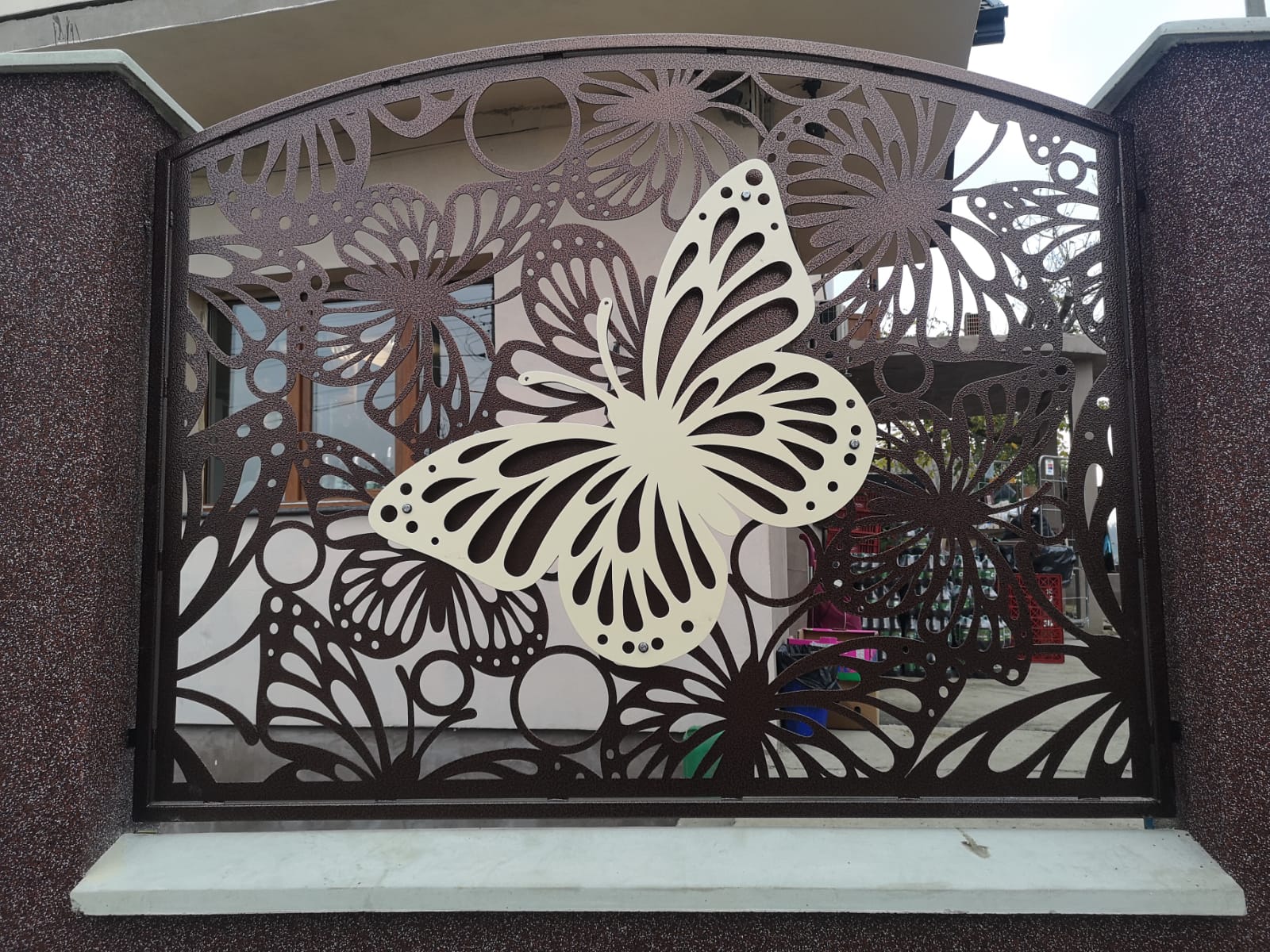 Ansamblul de porti STR-01 are lungimea totala de 4600 mm si inaltimea 2000 mm, din care portile mari 3600 mm iar poarta mica 1000 mm ca si lungime.