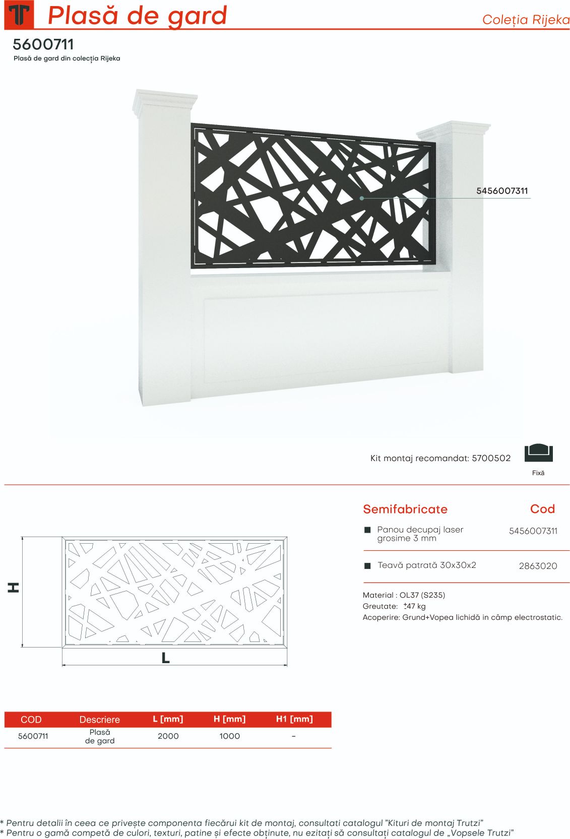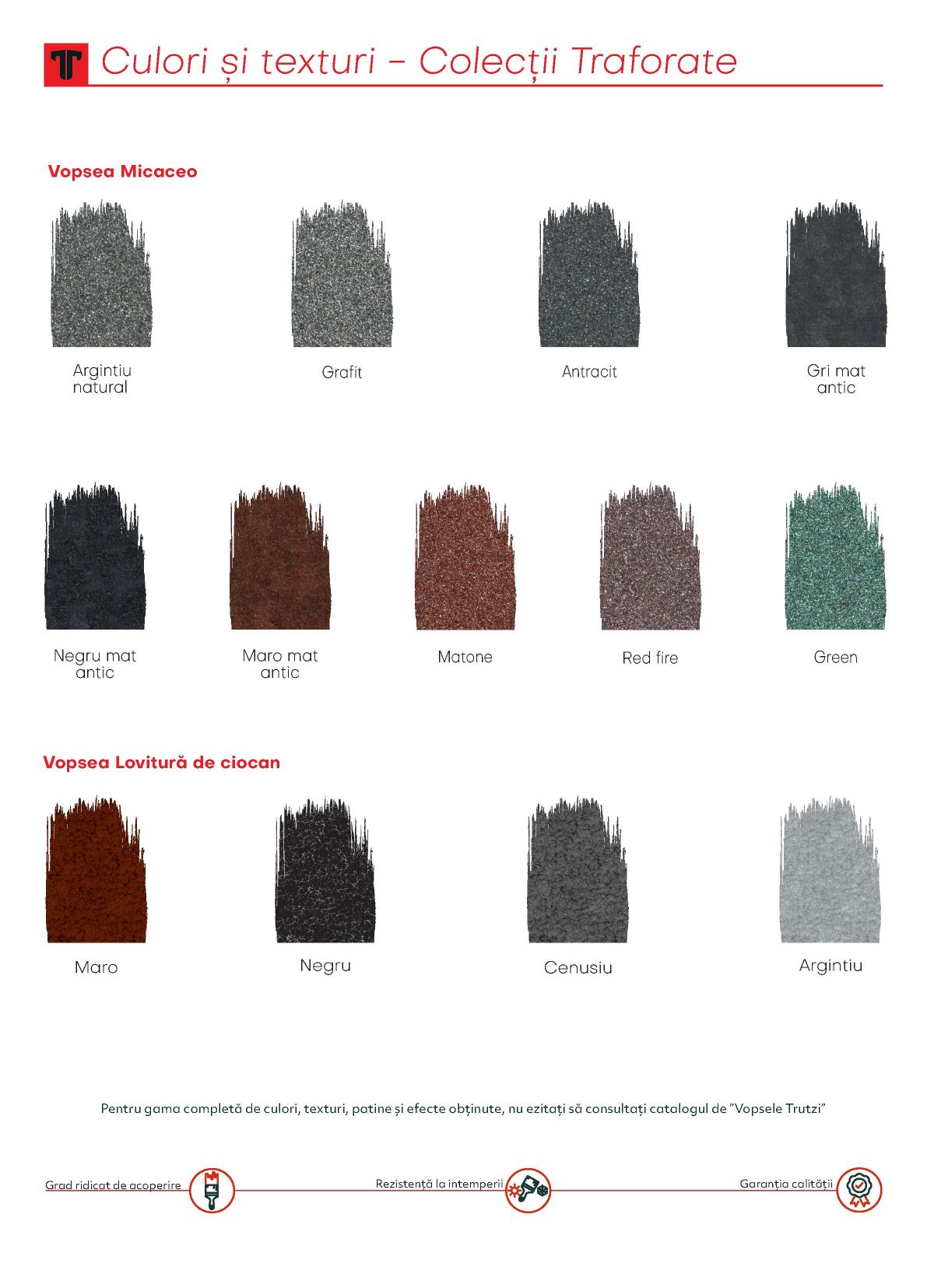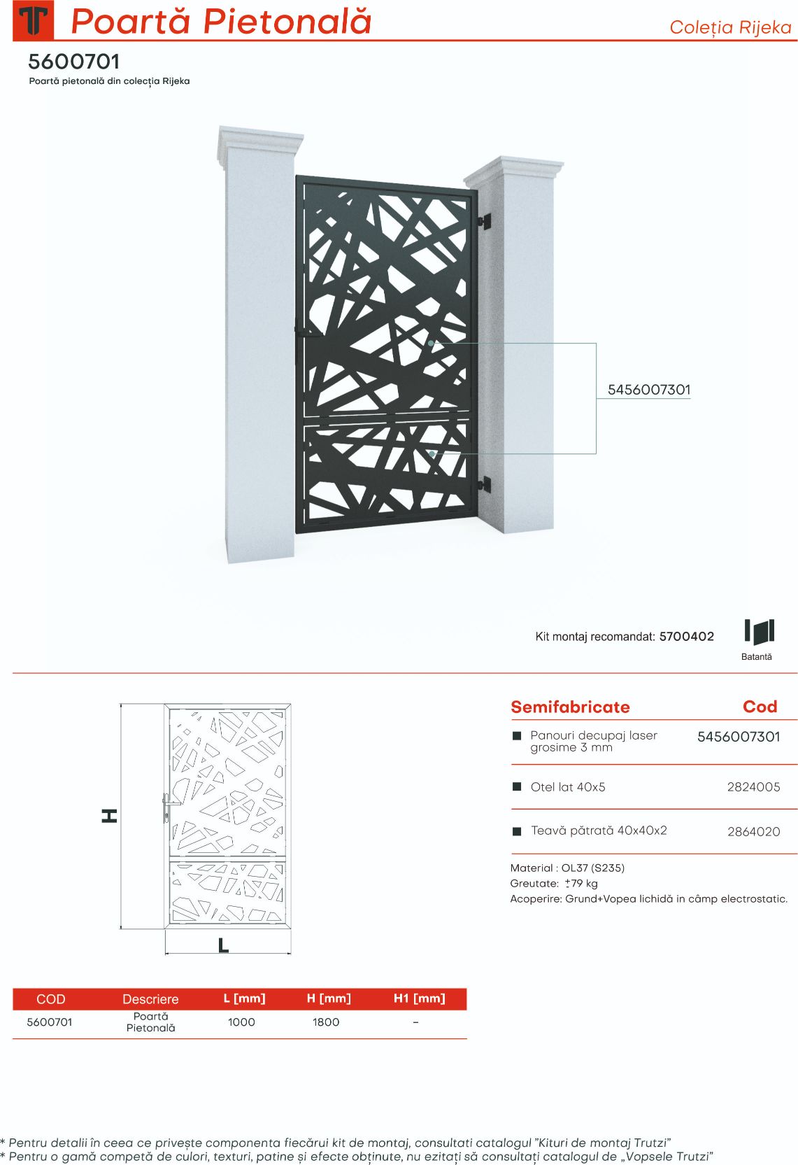 Set porti compus din 2 porti auto cu lungime totala 3500 mm si inaltime 2000 mm si poarta mica 1000x2000mm, confectionat din tabla debitata laser cu grosimea de 3mm, rama 40x40x2 mm. Vopsit in camp electrostatic.