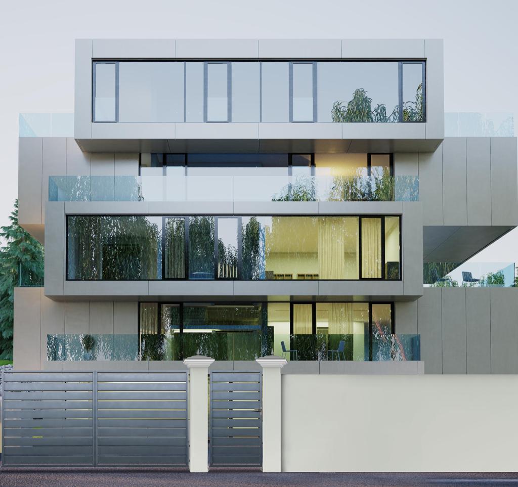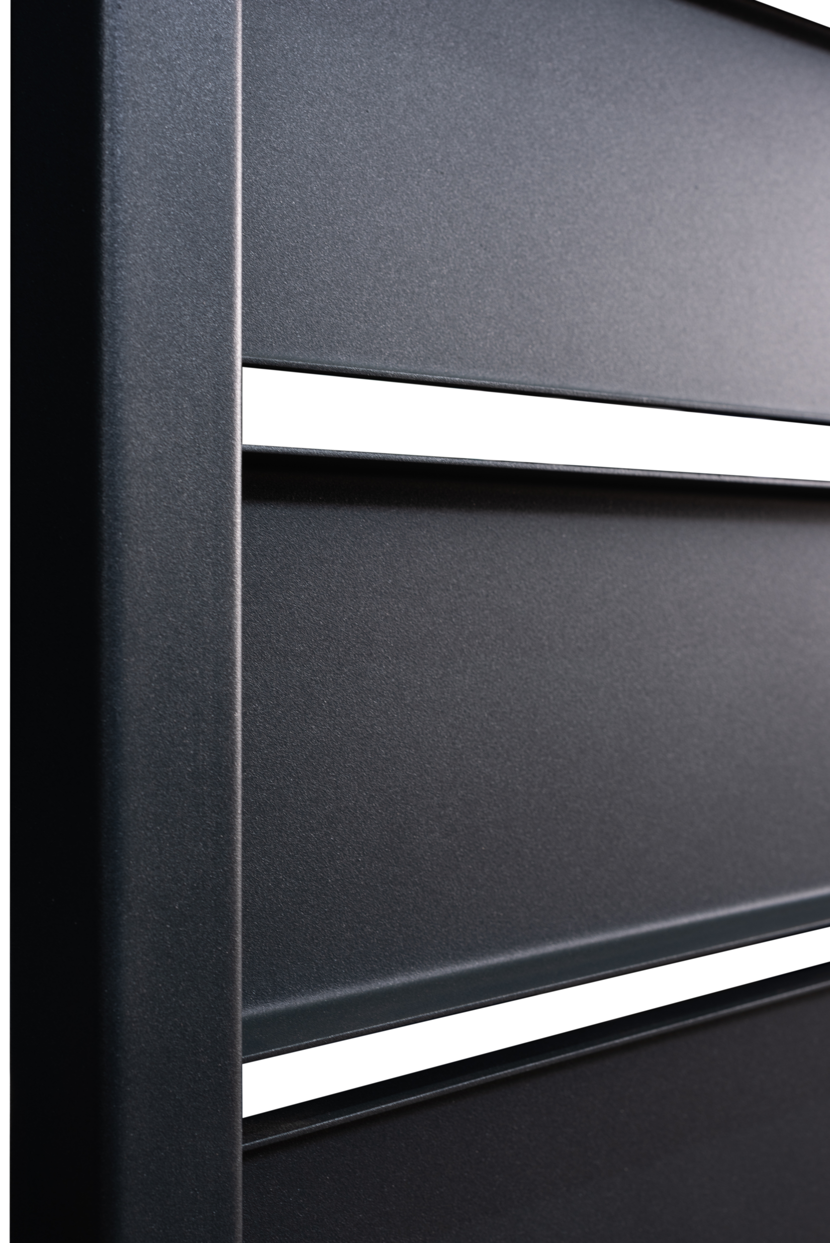 Set porti auto si poarta pietonala cu rama din teava 40x40x2, sipci orizontale din tabla debitata laser si indoita la abkant CNC cu grosimea de 1.5 mm